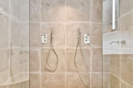 Charming bathroom design with two showers with a convenient faucet