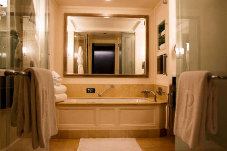 CHICAGO, ILLINOIS, UNITED STATES - DEC 12th, 2015: Modern and spacious bathroom suite designed with luxury in a luxus hotel