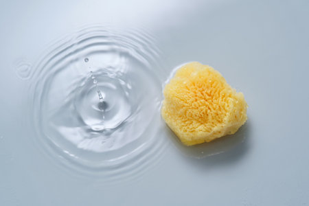 Sparkling Water Droplets on a Vibrant Yellow Sponge.