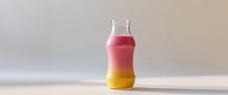 AI Generated. Mockup of a colorful smoothie bottle on blurred background