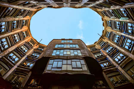 Barcelona, Spain - 30 July 2020: Casa Batllo atrium with inner windows