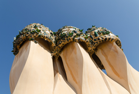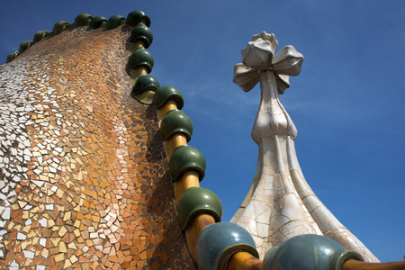 Casa Batllo, housetop , details with ceramic mosaic. Building redesigned in 1904 by Gaudi located in the center of Barcelona