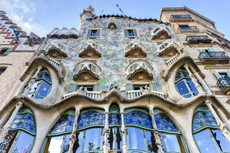 Stunning facade of the famous Casa Batlló located in Barcelona, Spain, Catalan modernist architecture, tourist area par excellence