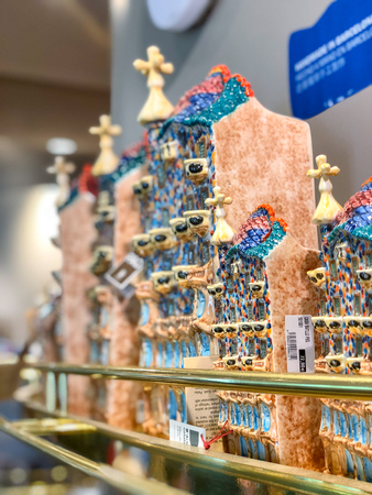 BARCELONA - MAY 14, 2018: Gaudi style souvenirs in a classi city shop. Gaudi is a leader of Catalan modernism.