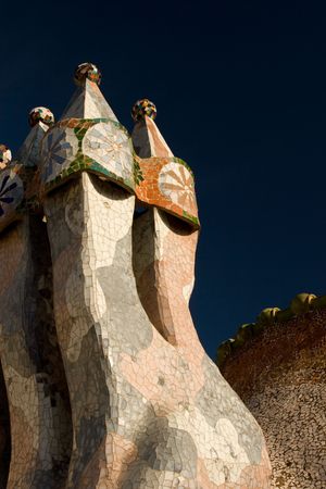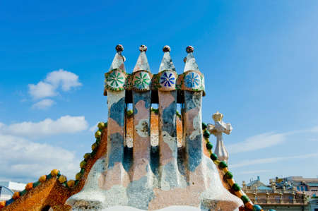 OCT 26, 2012 Barcelona, Spain - Casa batllo extraordinary mansion artisan mosaic decorated chimney was design by Antoni Gaudi, the most famous Spanish architect.