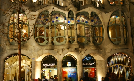 BARCELONA - DECEMBER 16 The facade of the house Casa Battlo also could the house of bones designed by Antoni Gaudi with his famous expressionistic style on December 16, 2011 Barcelona, Spain