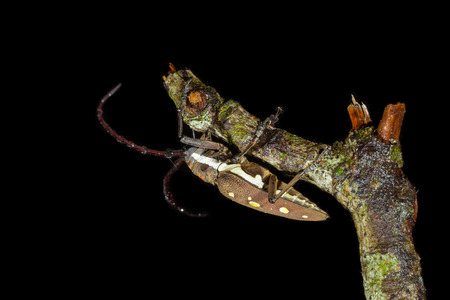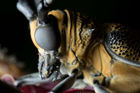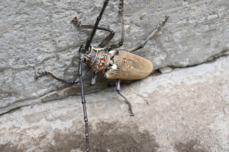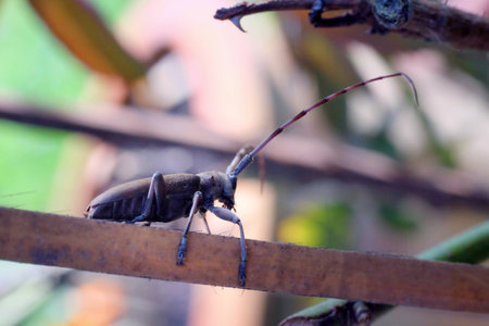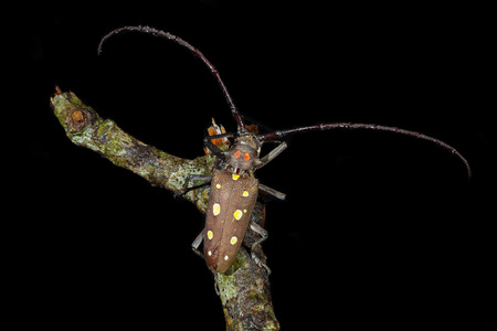Macro image of a Longhorn Beetle, known scientifically as Batocera parryi, found at the tropical rainforest of Cameron Highlands, Pahang, Malaysia.