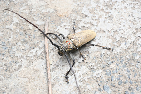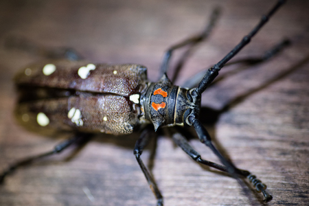 Close-up top view of Batocera rufomaculata Longhorn beetle