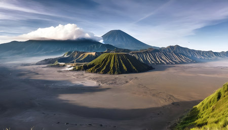 Beautiful view of Mount Bromo and surrounding area in East Java, Indonesia