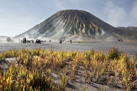 4x4 car service for tourist on desert at Bromo Mountain, Mount Bromo is one of the most