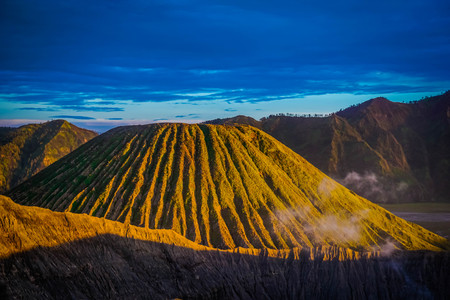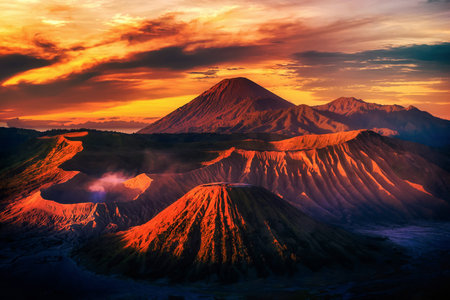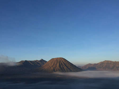 Mount Bromo volcano at sunrise, the magnificent view of Mt. Bromo, located in Bromo Tengger Semeru National Park, East Java, Indonesia