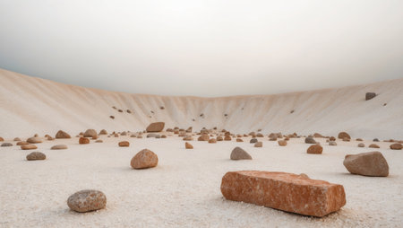 AI Generated. Naturally Occurring Rocks Dispersed in a Crater