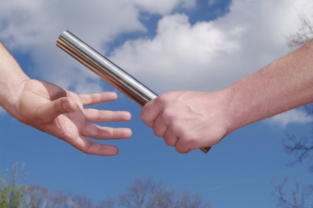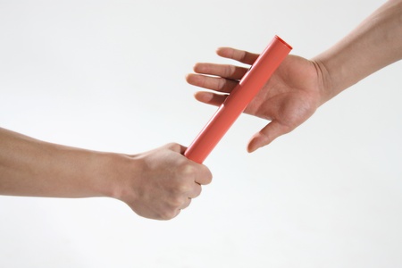 Businessman passing on a baton