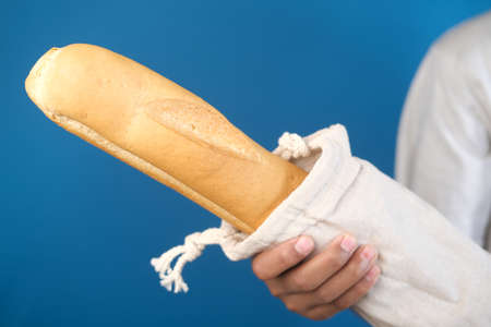 bag with bread on light color background..
