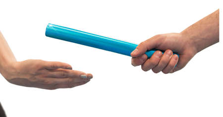 Hands and relay race isolated on white background