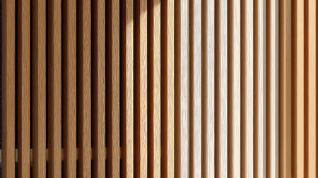 Abstract close-up of vertical wooden slats with soft background blur and natural light contrast