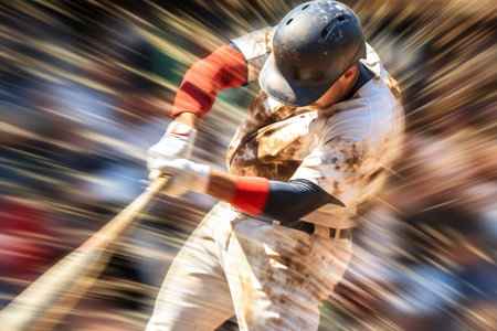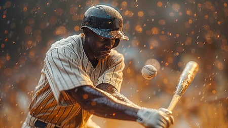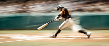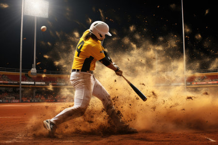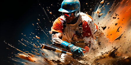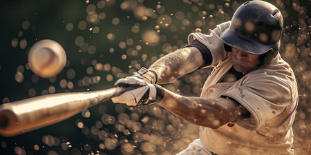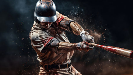 An AI-generated image of a baseball player hitting a ball. Perfect for sports sites, articles or social media posts. Shows cutting-edge technology in creating realistic images.