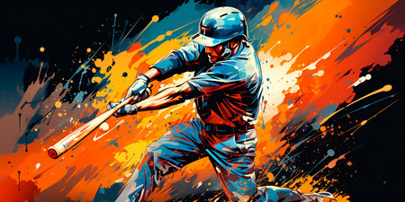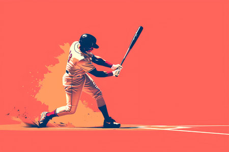 Minimalist illustration of a baseball player in mid-swing, emphasizing movement and energy. Generative AI