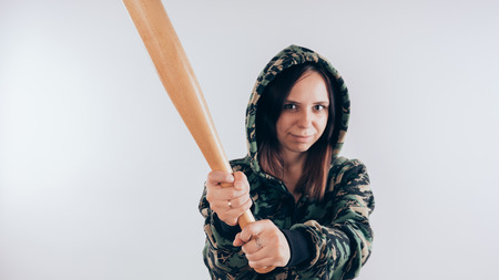 Girl with a bat. girl in the background. Body art. Sport and training