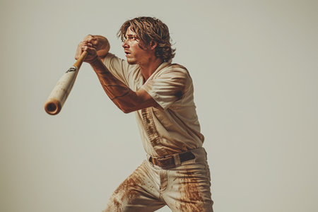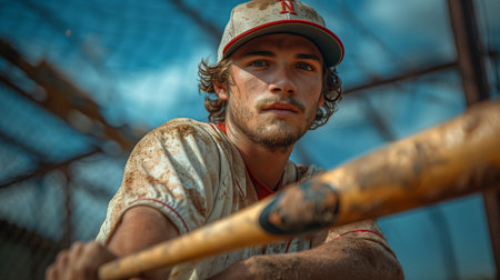 A gritty image of a man gripping a blood-stained bat, showing themes of danger and intensity