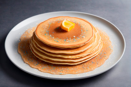 Fluffy Pancakes with Butter and Sprinkles on Plate. Generative AI.