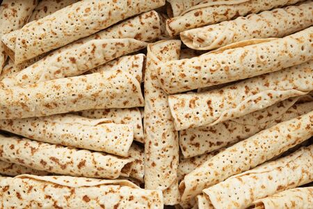 Thin pancakes close up background