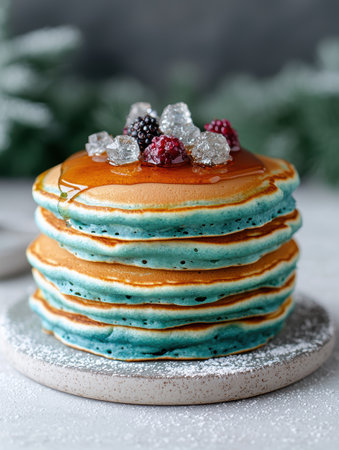 AI Generated. Stack of Pancakes Topped with Raspberries Blueberries and Blackberries