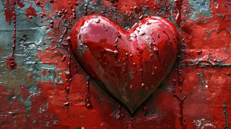 Abstract Red Heart on Vintage Background: A Symbol of Love and Art by Generative AI