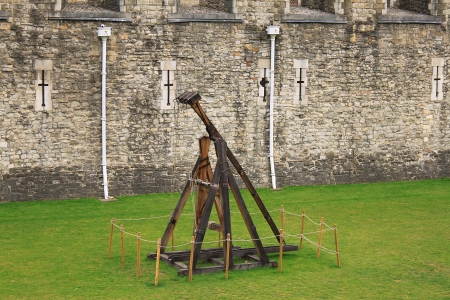 Battle catapult in The Tower of London, medieval castle and prison, UK