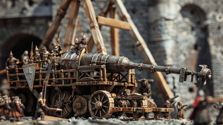 Medieval siege weapons, crossbows, onagers, catapults and battering rams