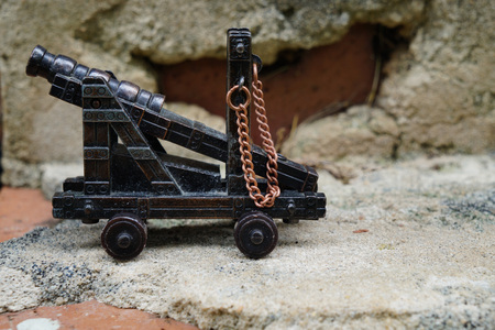 Very old gun for throwing stones to be protected. Old castle walls