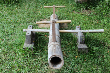 Empty old bamboo seesaw in the park.