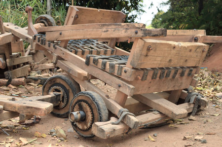 wooden sleigh wheeled in Mon jam Chiangmai, Thailand