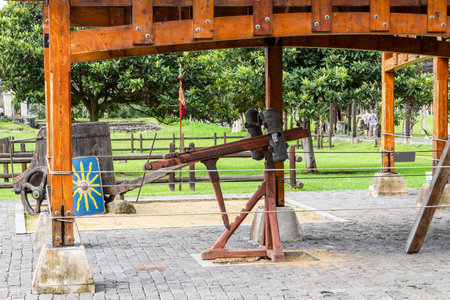 Gonio, Georgia - September 18, 2013: catapult in Gonio Fortress ancient Roman fortification in Adjara, Georgia. The first mention of fortress belongs to Pliny the Younger in 1st century AD