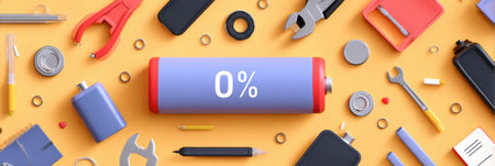 Low level of smartphone charged battery level indicator - nineteen, 19 percent: close up macro view of gadget display, screen. Energy, technology, power, digital and symbol concept
