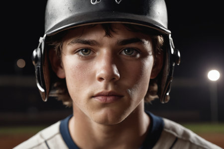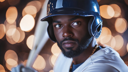 Focused Baseball Player Ready to Swing for the Fences, Dramatic Close Up Sports Portrait