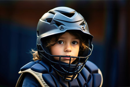 A close up of a child wearing a baseball helmet. Sports protective equipment. Children's sports.