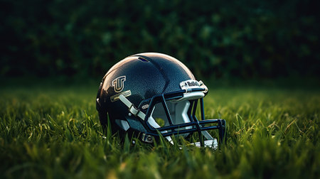 American football helmet on green grass AI generated illustration