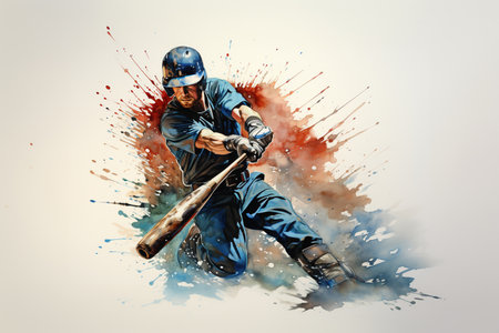 Generative AI, Watercolor baseball player with bat, vintage muted colors