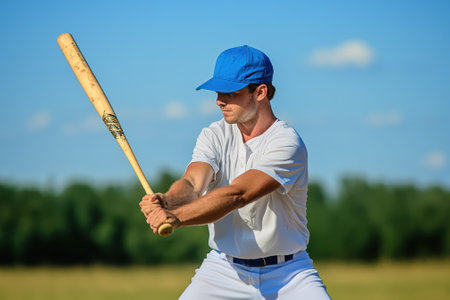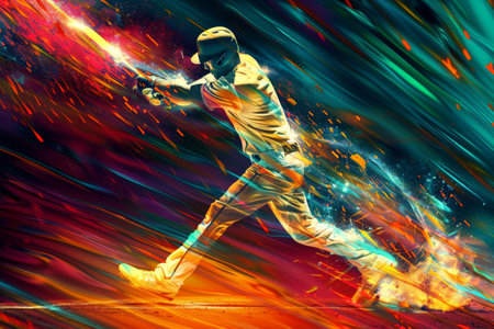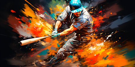 AI-generated baseball player batting Innovative use of AI in sports photography Captures the dynamic movements and precision of baseball players. Enhances visual appeal
