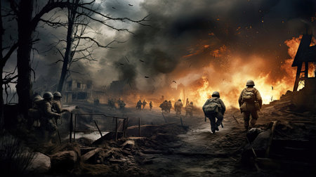 3D Illustration of a World War Soldiers in the Fire.