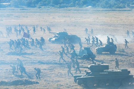MOGILEV, BELARUS - MAY, 08, 2015: Reconstruction of Battle during events dedicated to 70th anniversary of the Victory of the Soviet people in the Great Patriotic War.