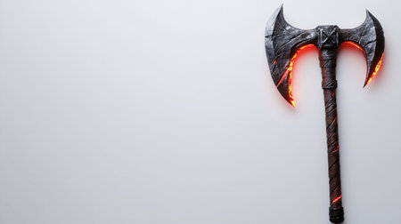 A close-up shot of a double-bladed axe with a glowing orange effect, set against a plain background.