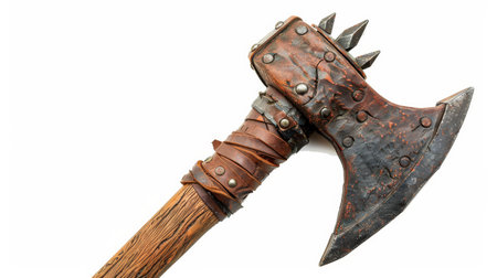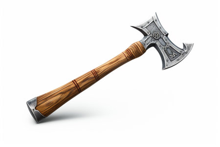 This high-quality image showcases a traditional axe isolated on a white background. Perfect for design projects related to camping, woodworking, and outdoor activities, this detailed cutout emphasizes the craftsmanship and rugged utility of the tool.
