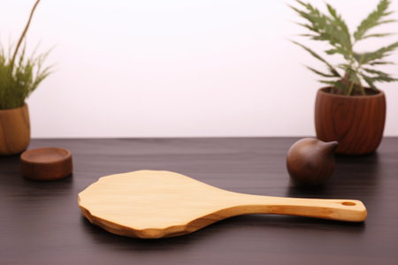 natural wood gua sha tool on a minimalist desk, created with generative ai