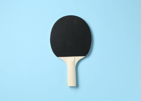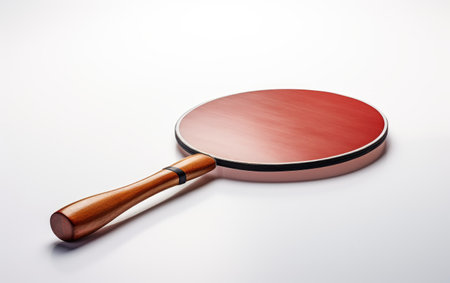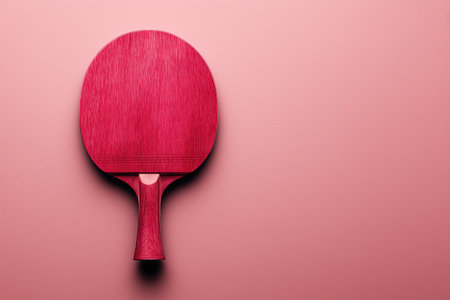 A vibrant red table tennis paddle is placed on a soft pink background. The image captures the simplicity and elegance of the paddle, making it suitable for sports-related themes. ai generated.