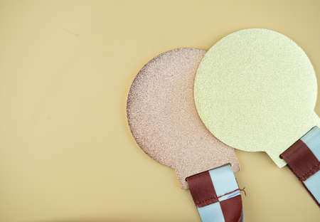 Champion gold and bronze medal. First and Third Place. Sports medals on yellow background