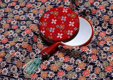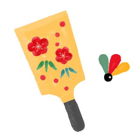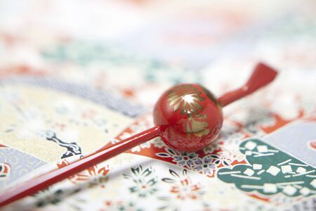 chinese new year background, asian style doll and flower fan, copy space, place for text