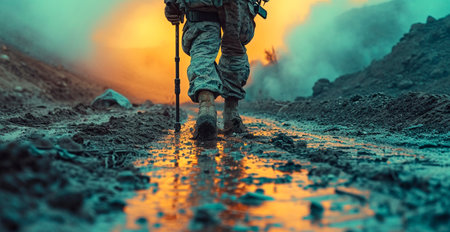 War, wounded soldiers, disabled male soldier AI generated image