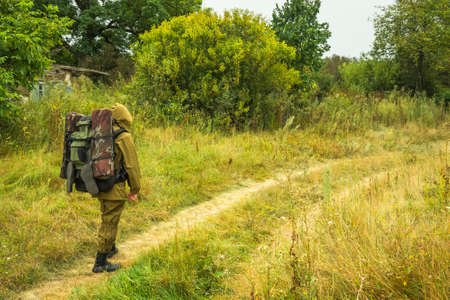 traveler, tourist walking on deserted road STALKER